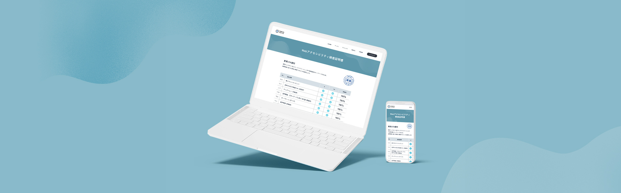 修正完了後のWebサイトの診断結果を同Webサイト上に公開(Webサイトのデザインに合わせたウェブアクセシビリティ方針ページ、検査証明書ページ、テスト対象URLごとの達成基準リストページを作成。)