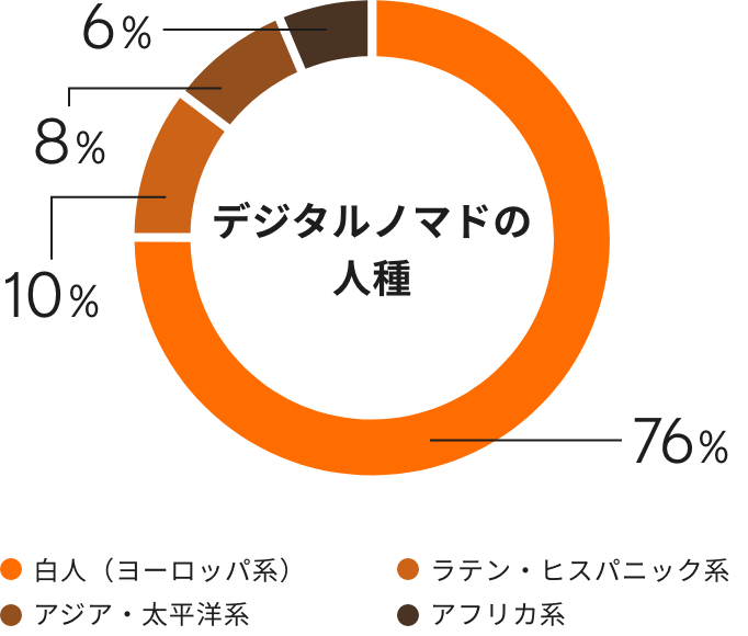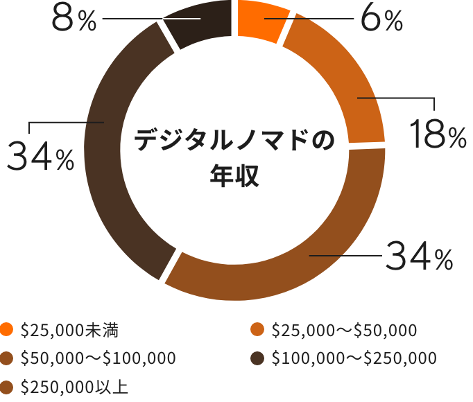 年収の平均値は1200万円※2で、トップレベルの仕事スキルがないと到達できない年収です。デジタルノマドには高い仕事スキルを持った人が多いと推測できます。